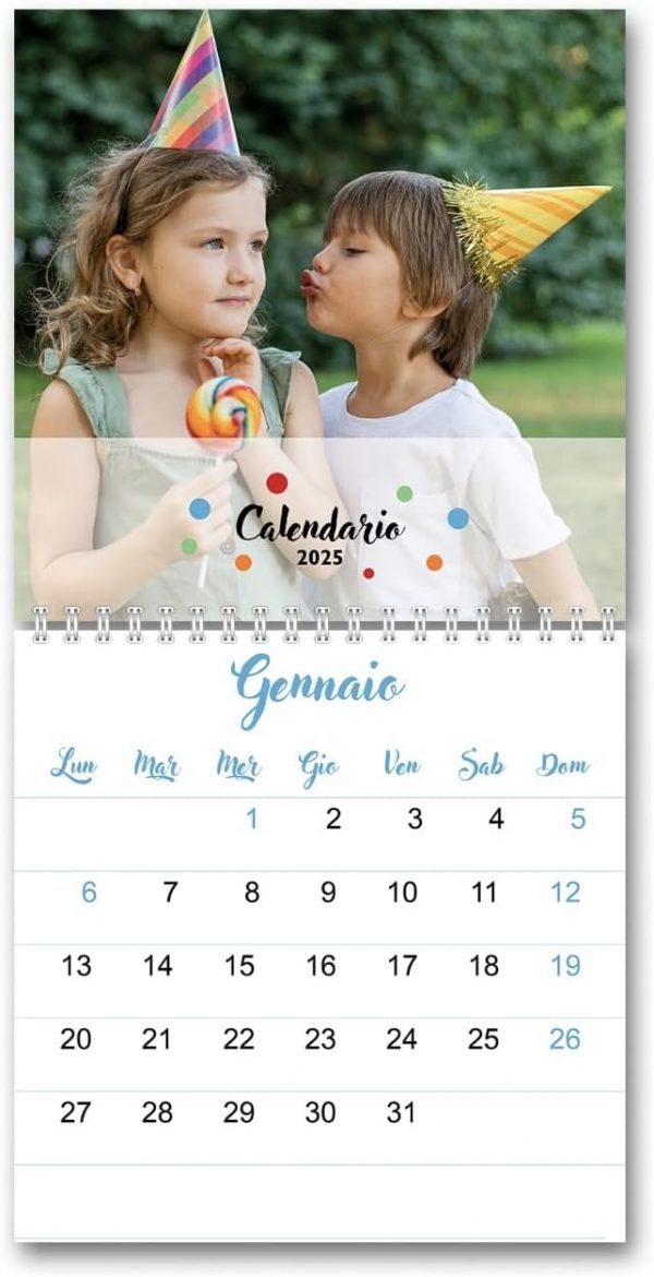 Porta ordine e bellezza sulla tua scrivania con il nostro Calendario da Tavolo. Realizzato con spirale metallica bianca e stampato su cartoncino premium da 300g, garantisce colori intensi e dettagli nitidi. Ogni mese diventa speciale grazie alla possibilità di personalizzare le pagine con le tue foto o immagini preferite, trasformando un semplice planner in un oggetto unico e personale.