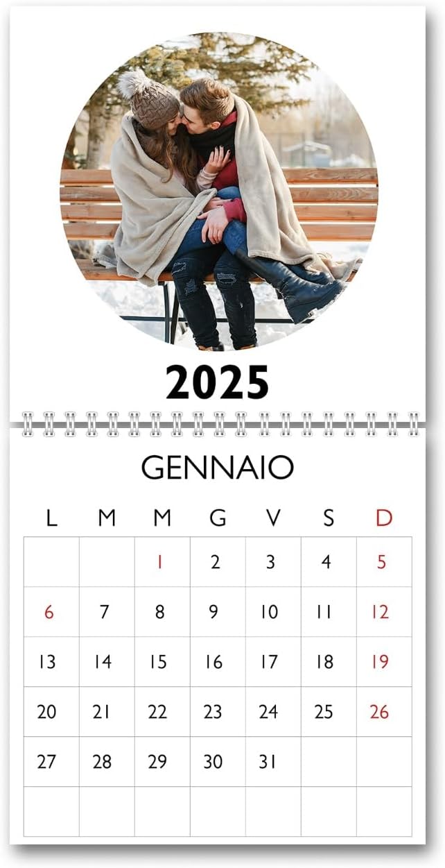 Porta ordine e bellezza sulla tua scrivania con il nostro Calendario da Tavolo. Realizzato con spirale metallica bianca e stampato su cartoncino premium da 300g, garantisce colori intensi e dettagli nitidi. Ogni mese diventa speciale grazie alla possibilità di personalizzare le pagine con le tue foto o immagini preferite, trasformando un semplice planner in un oggetto unico e personale.