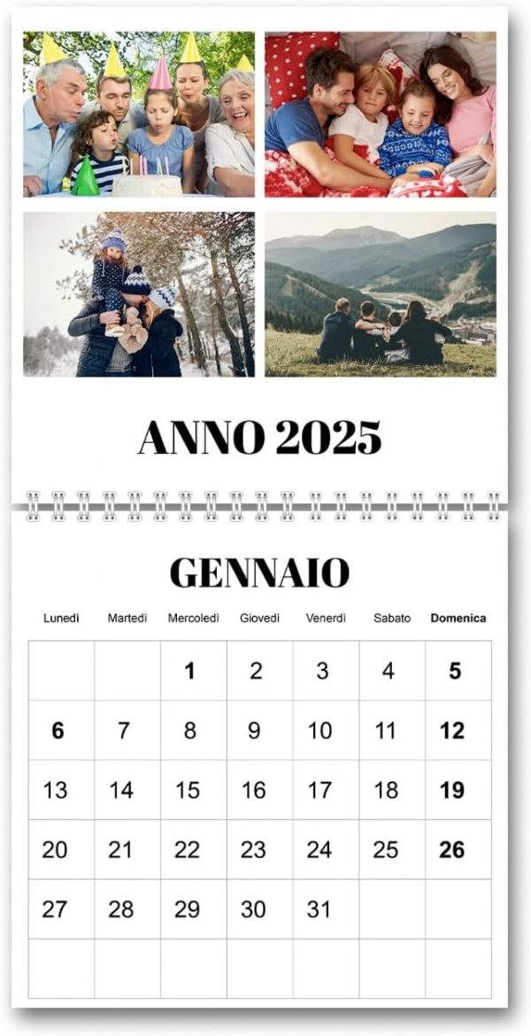 Porta ordine e bellezza sulla tua scrivania con il nostro Calendario da Tavolo. Realizzato con spirale metallica bianca e stampato su cartoncino premium da 300g, garantisce colori intensi e dettagli nitidi. Ogni mese diventa speciale grazie alla possibilità di personalizzare le pagine con le tue foto o immagini preferite, trasformando un semplice planner in un oggetto unico e personale.