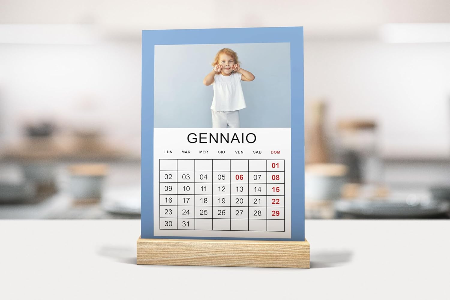 Porta ordine e bellezza sulla tua scrivania con il nostro Calendario da Tavolo. Realizzato con spirale metallica bianca e stampato su cartoncino premium da 300g, garantisce colori intensi e dettagli nitidi. Ogni mese diventa speciale grazie alla possibilità di personalizzare le pagine con le tue foto o immagini preferite, trasformando un semplice planner in un oggetto unico e personale.