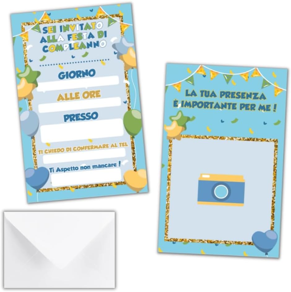 • 👧👦 Perfetti per Grandi e Piccoli: Gli inviti si adattano a qualsiasi tipo di compleanno, dal primo anno fino alle feste più speciali, regalando sempre un tocco di allegria e originalità.