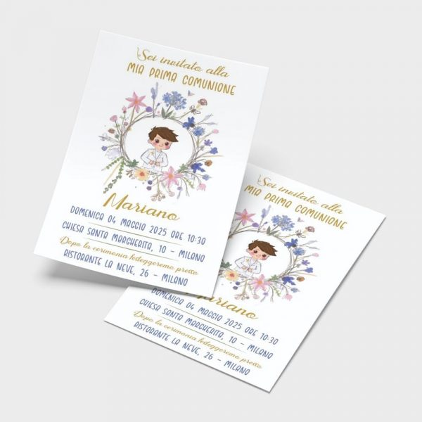 • Set Completo Inviti per Comunione: Ogni confezione include a partire da 20 inviti di alta qualità, perfetti per annunciare con stile e raffinatezza la Prima Comunione del tuo bambino o della tua bambina.