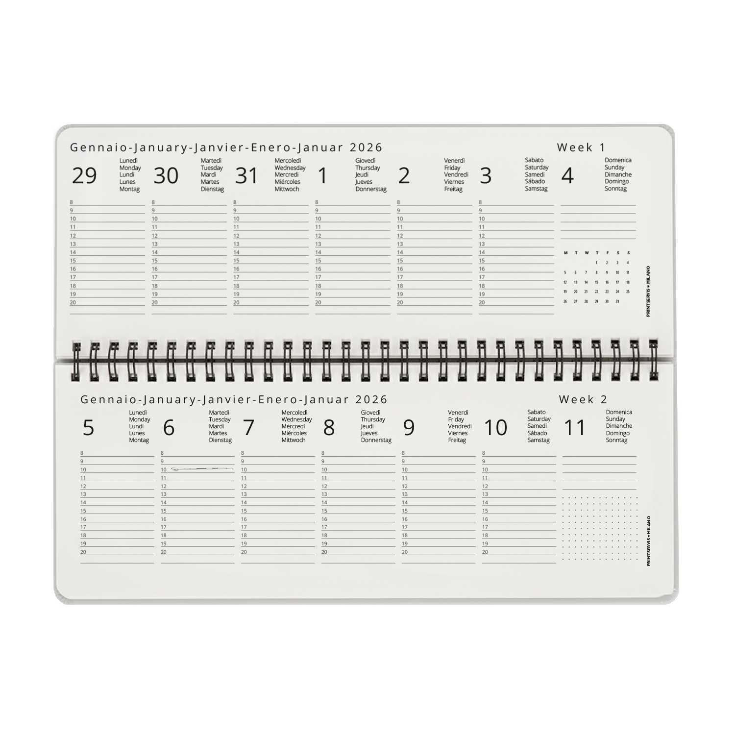 Planning da Tavolo 2026 Formato 10,5×29,7 cm | Planner Settimanale e Mensile con Spirale | Design Moderno o Floreale | Ideale per Ufficio, Casa, Studio | Agenda da Tavolo