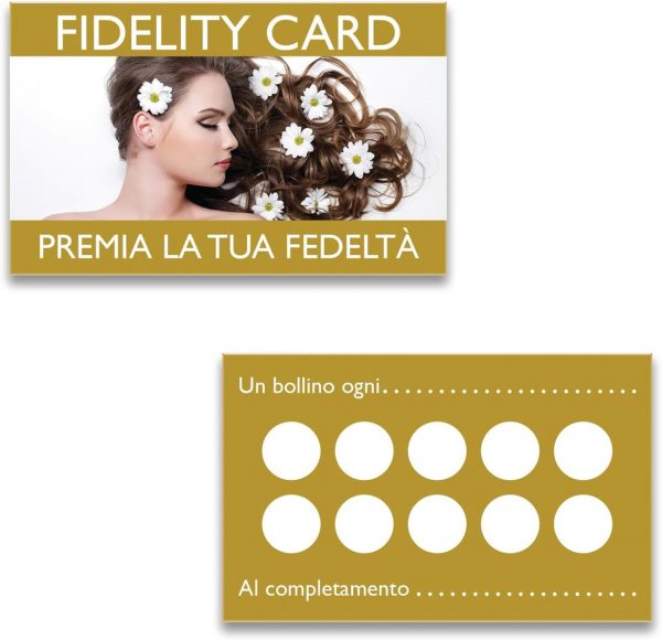 Ogni set comprende a partire da  50 carte fedeltà realizzate su cartoncino da 300 g, robusto e resistente, per garantire una lunga durata e una stampa nitida e chiara. Perfette per qualsiasi tipo di attività: negozi, saloni di bellezza, bar, ristoranti, studi professionali e molto altro.
